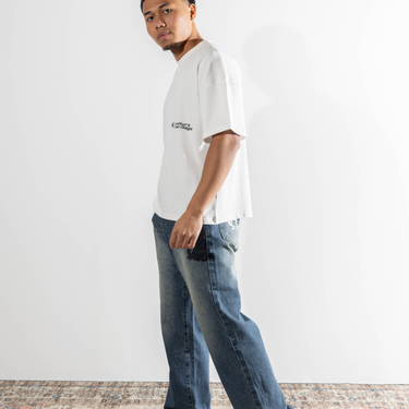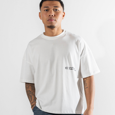 The tee is our new improved boxy oversized fit, we recommend going true to size.