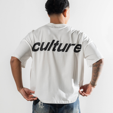 The Altitude Tee, a must have for the wardrobe rotation. It features a single logo screen print on the lower left side of the front, with a large 'culture' typography spanning across the upper back.