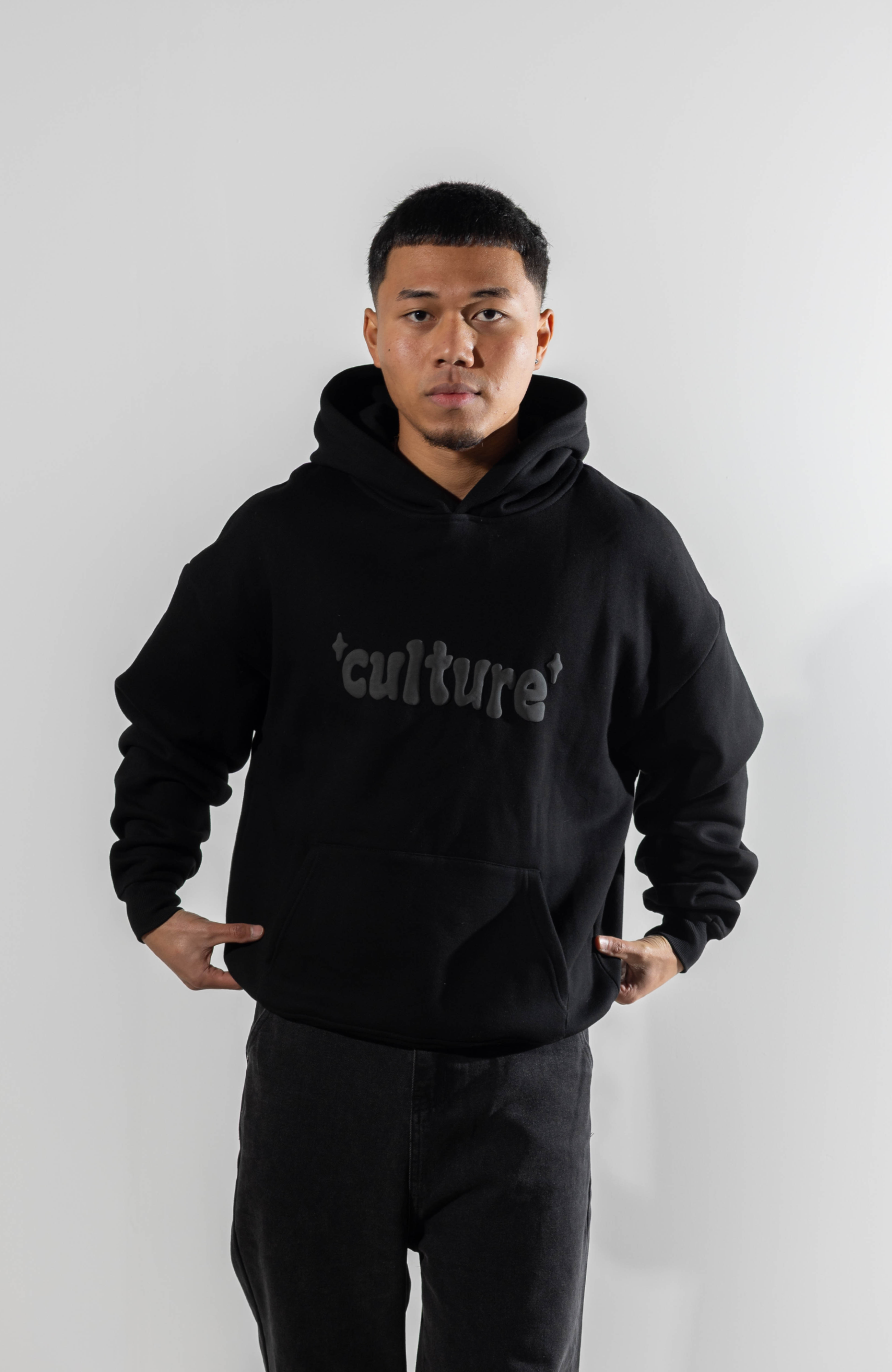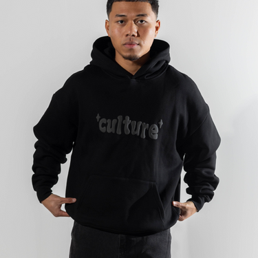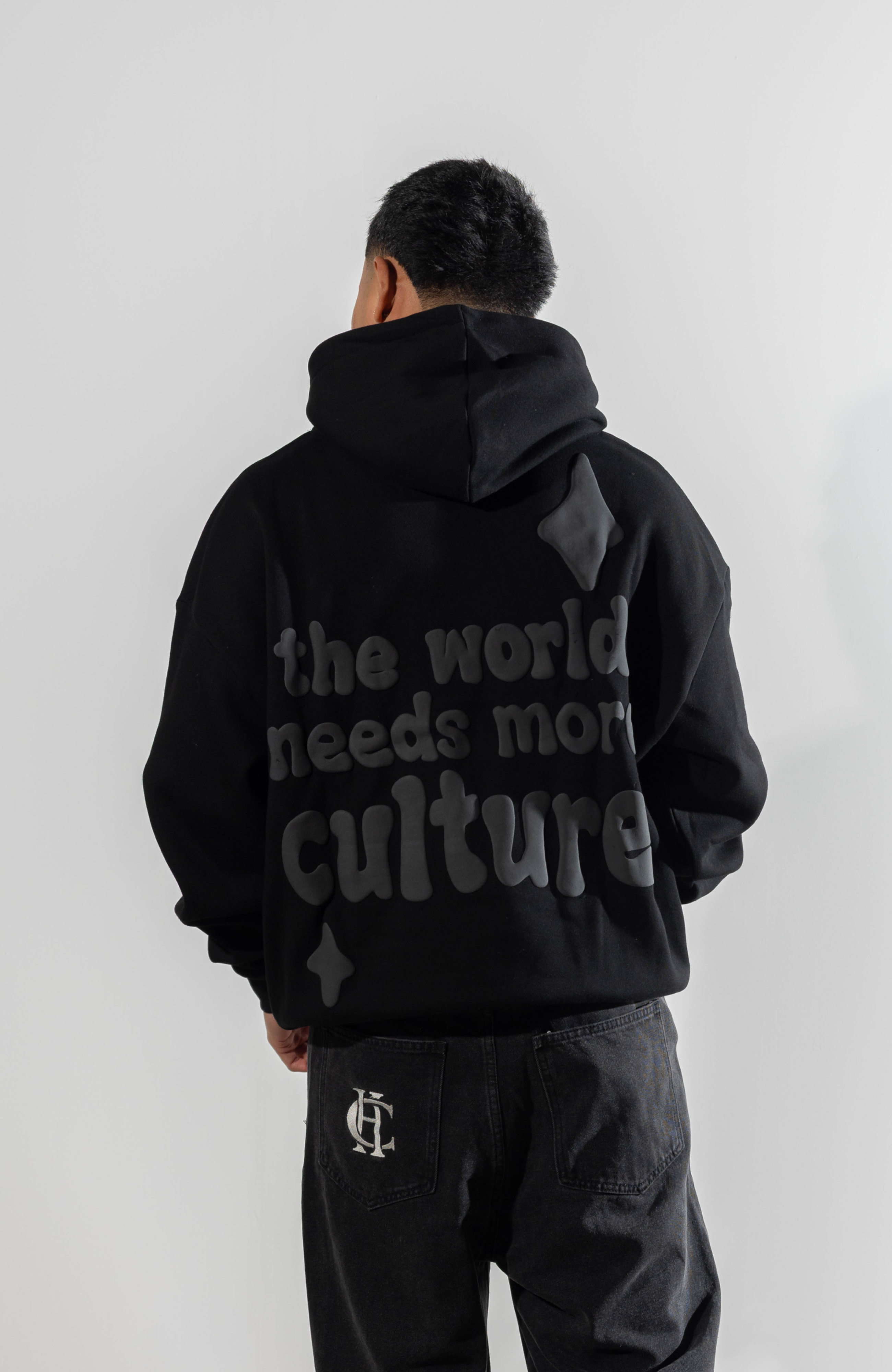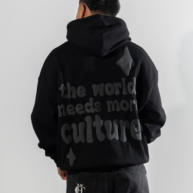 The World Culture Hoodie features a large puff print on the back ‘the world needs more culture’ with a front ‘culture’ puff print.