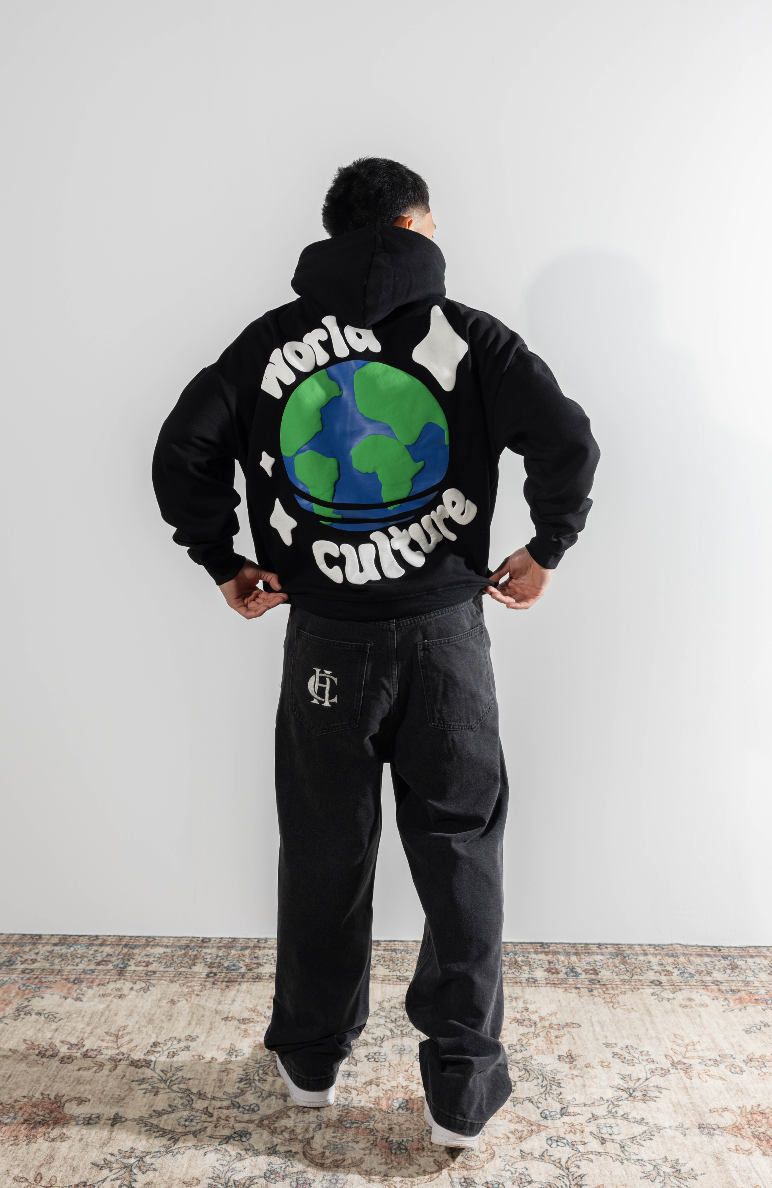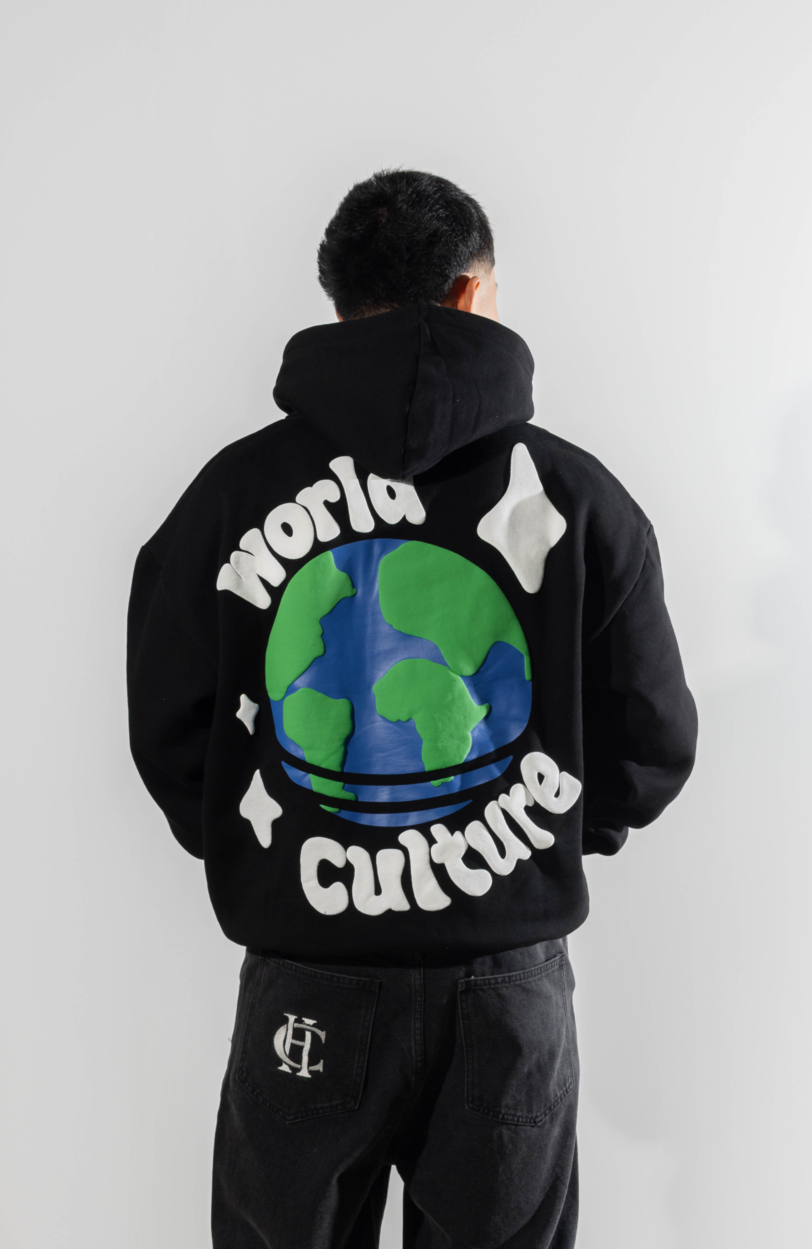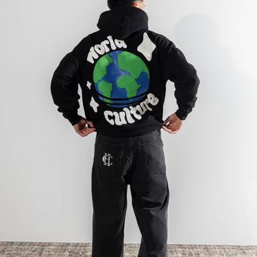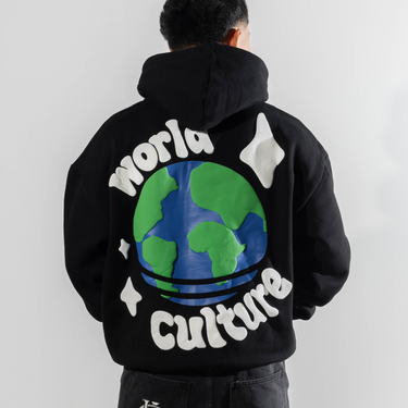 The World Culture Hoodie features a large layered puff print and screen print on the back with a front puff print logo.