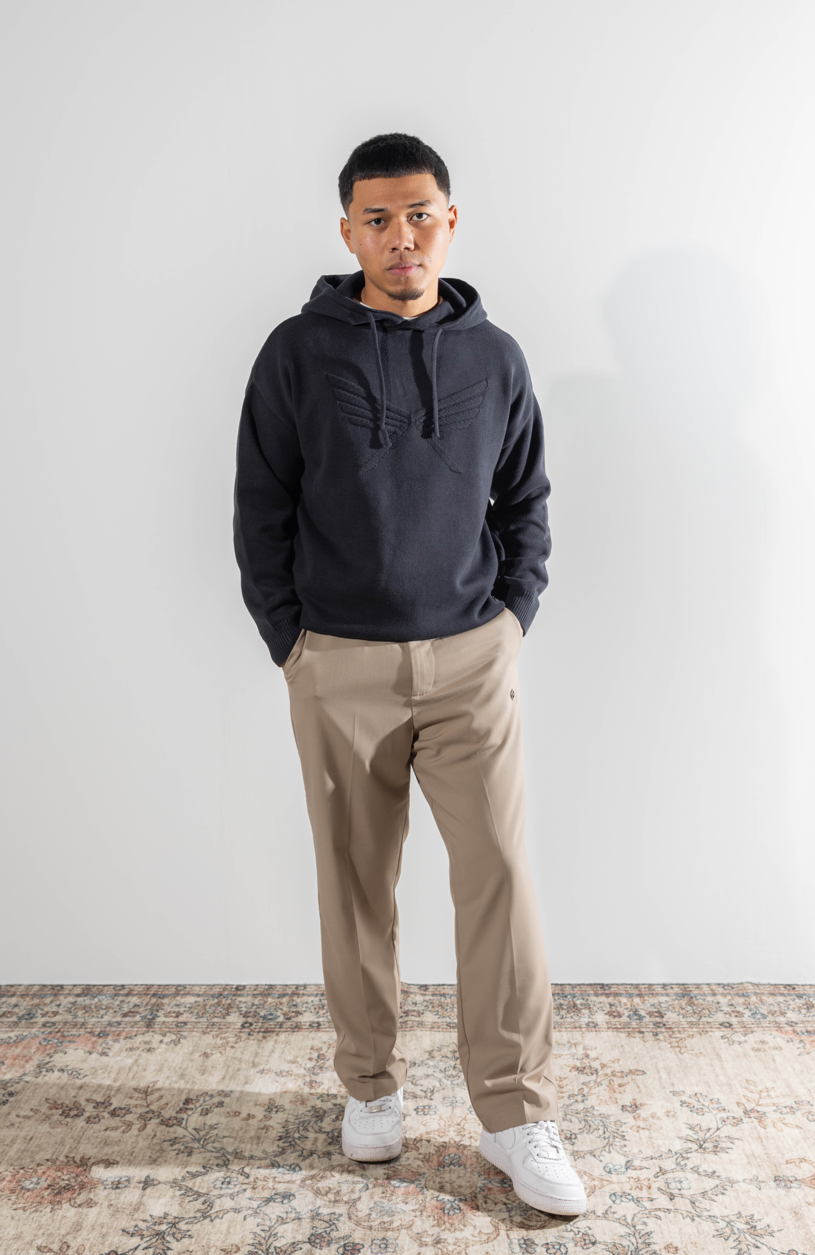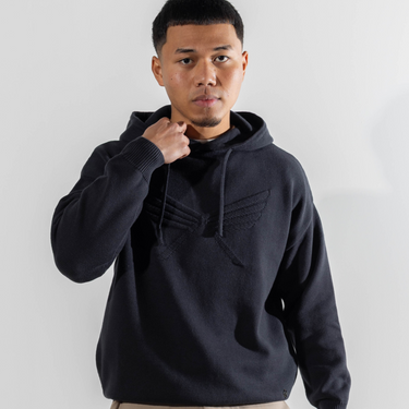 Culture Origins - Embossed Knitted Hoodie | Off Black