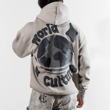 The World Culture Hoodie features a large layered puff print and screen print on the back with a front puff print logo.